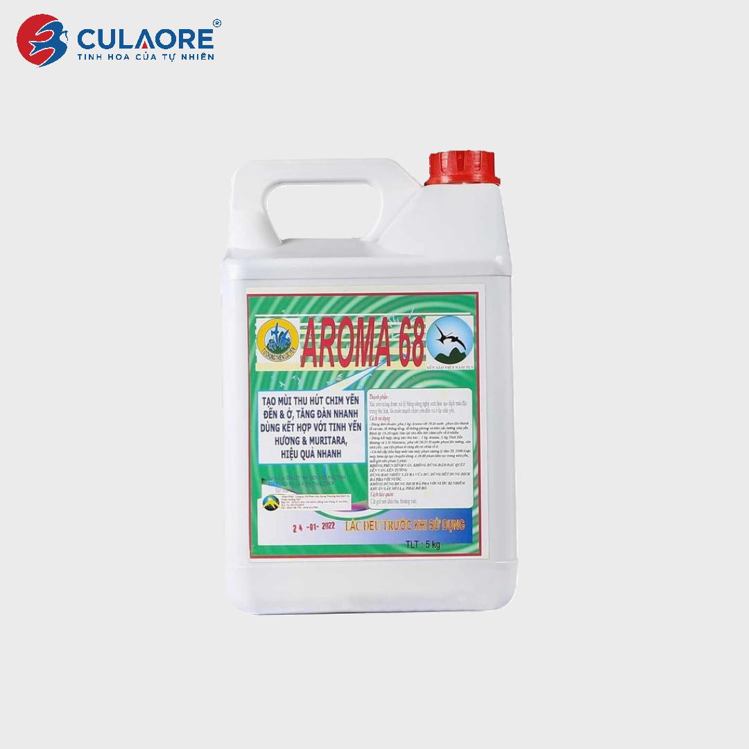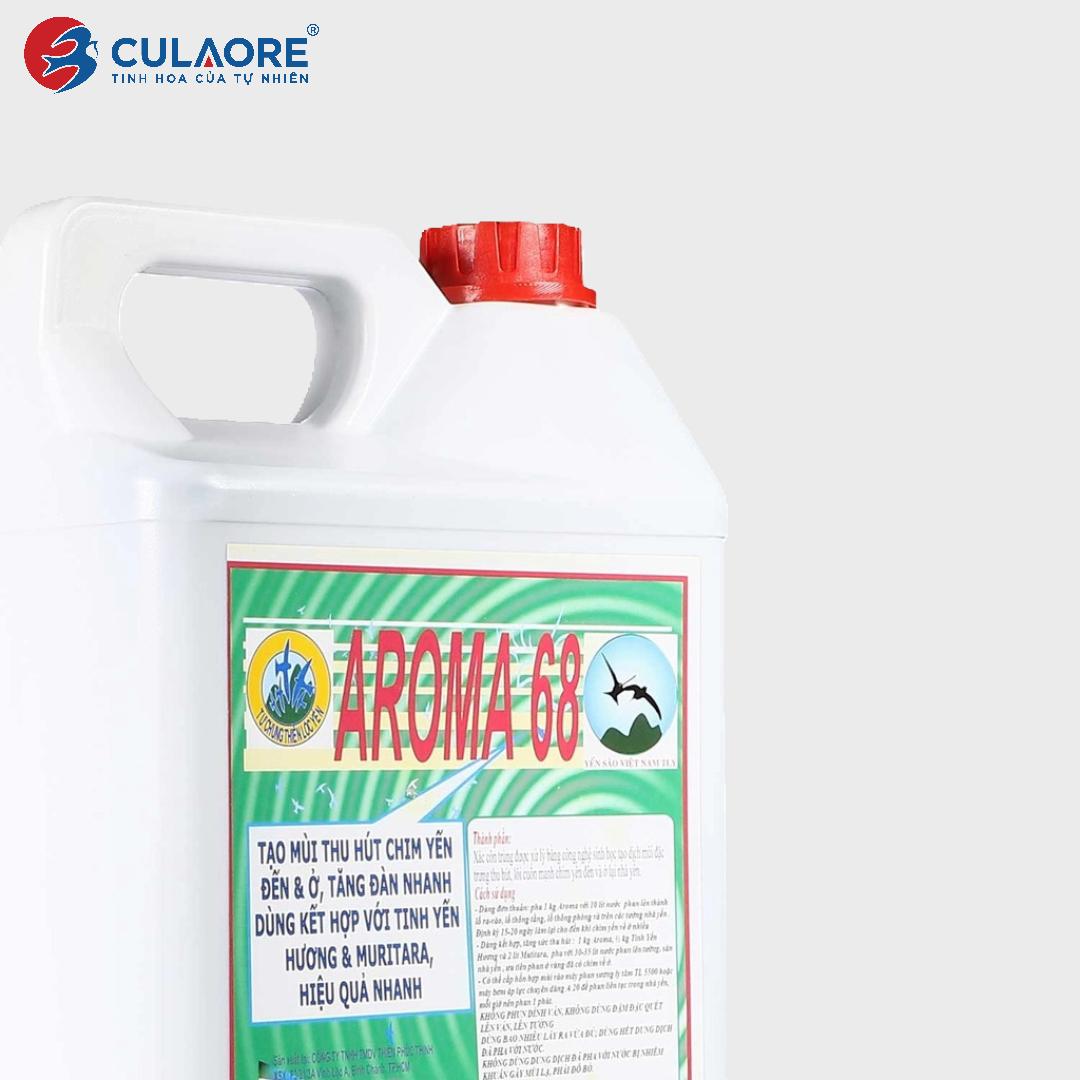 • Dung dịch AROMA 68 hấp dẫn và dẫn dụ yến ở lại. Khử mùi hôi nhà Yến mới và ngăn chặn côn trùng trong nhà yến, tạo môi trường tự nhiên trong nhà nuôi Yến, khuyến khích chim yến làm tổ trong thời gian ngắn. AROMA 68 là dung dịch được sản xuất dùng kết hợp với Tinh Yến Hương và MURITARA. Nguyên liệu chủ yếu có trong AROMA là xác côn trùng được xử lý bằng công nghệ sinh học tạo mùi đặc trưng thu hút, lôi cuốn mạnh chim yến đến và ở lại nhà yến.